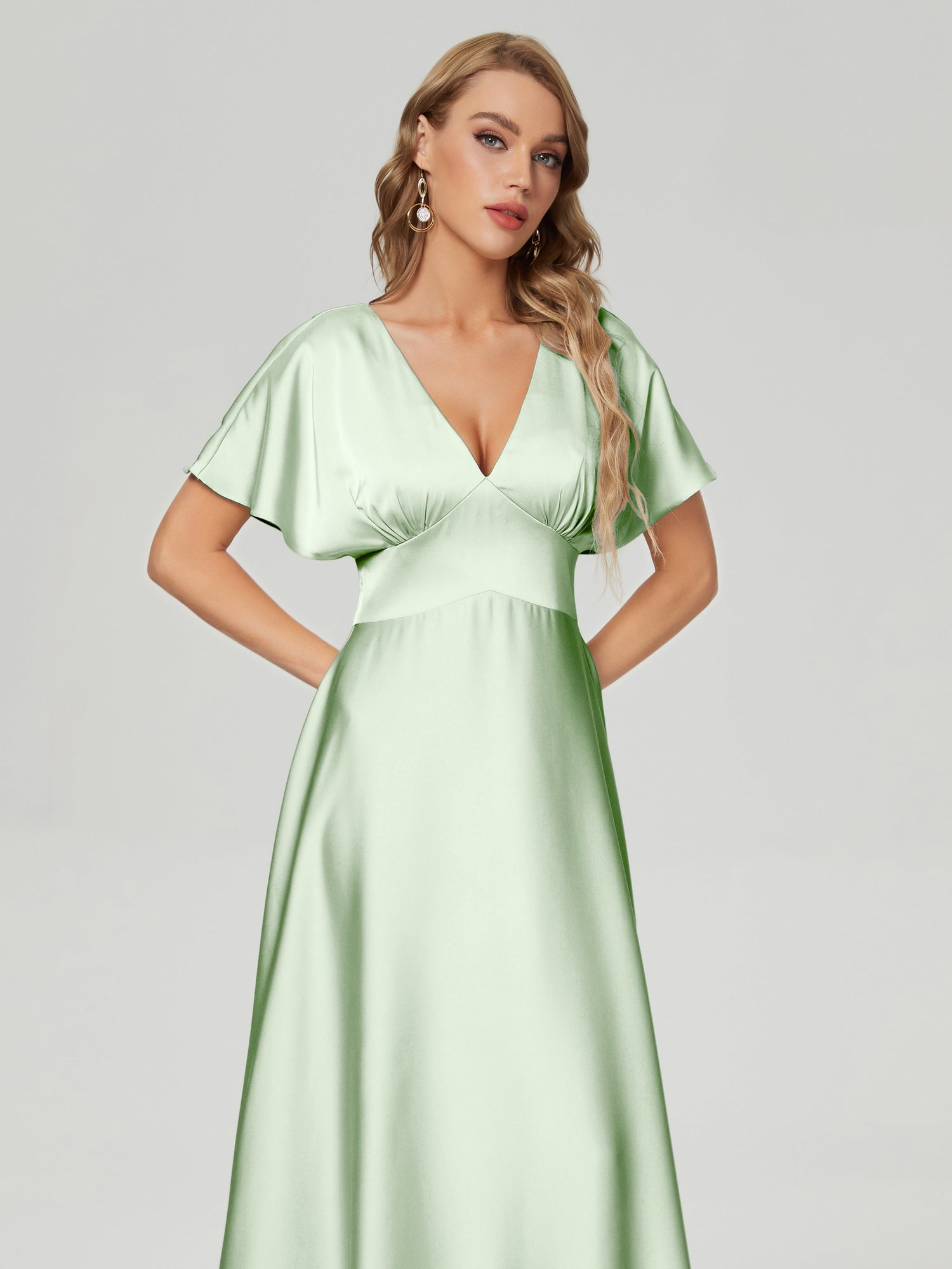 Ariah Modest Cap Sleeves Soft Satin Dresses
